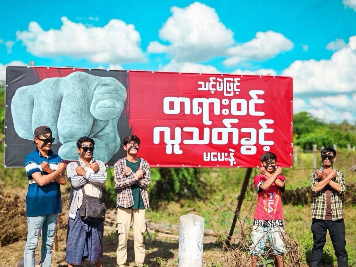 ပုံစာ – ဆားလင်းကြီးမြို့နယ်အတွင်း ရွေးကောက်ပွဲဆန့်ကျင်ရေးလှုပ်ရှားမှုအချို့အား တွေ့ရစဉ်။