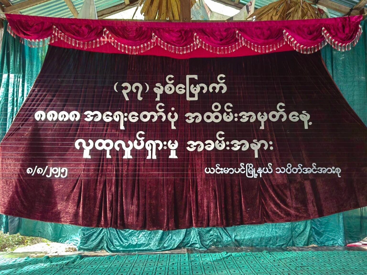 စစ်ကိုင်းတိုင်း၊ ယင်မာပင်မြို့နယ်မှာ စစ်ကောင်စီရဲ့ လေကြောင်းအန္တရာယ်ကြားက ၈ လေးလုံး အရေးတော်ပုံ ၃၇ နှစ် ပြည့်အခမ်းအနားကို အောင်မြင်စွာပြုလုပ်နိုင်ခဲ့တယ်လို့ ယင်းမာပင်မြို့နယ် သပိတ်အင်အားစုတွေက ပြောပါတယ်။