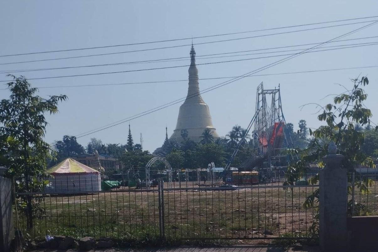 “ကစားကွင်းနဲ့ စျေးတန်းတွေက ဆောက်နေတုန်းပဲ။ ဇာတ်ပွဲက ၃၀ ရက်နေ့မှာ ဝင်မယ်လို့ပြောတယ်။ အခုချိန်ထိ ဇာတ်စင်တောင် မဆောက်ရသေးဘူး။ ဝန်းထဲမှာတော့ ရဲတယောက်နှစ်ယောက်ကို လုံခြုံရေးချထားတယ်။ ဆိုင်တန်းပေါင်း ၃၀ ဆယ်လောက်ပဲ ရှိမယ်။ ဈေးရောင်းတဲ့သူ‌တွေလည်း သိပ်မရှိဘူး” လို့ ဆိုပါတယ်။