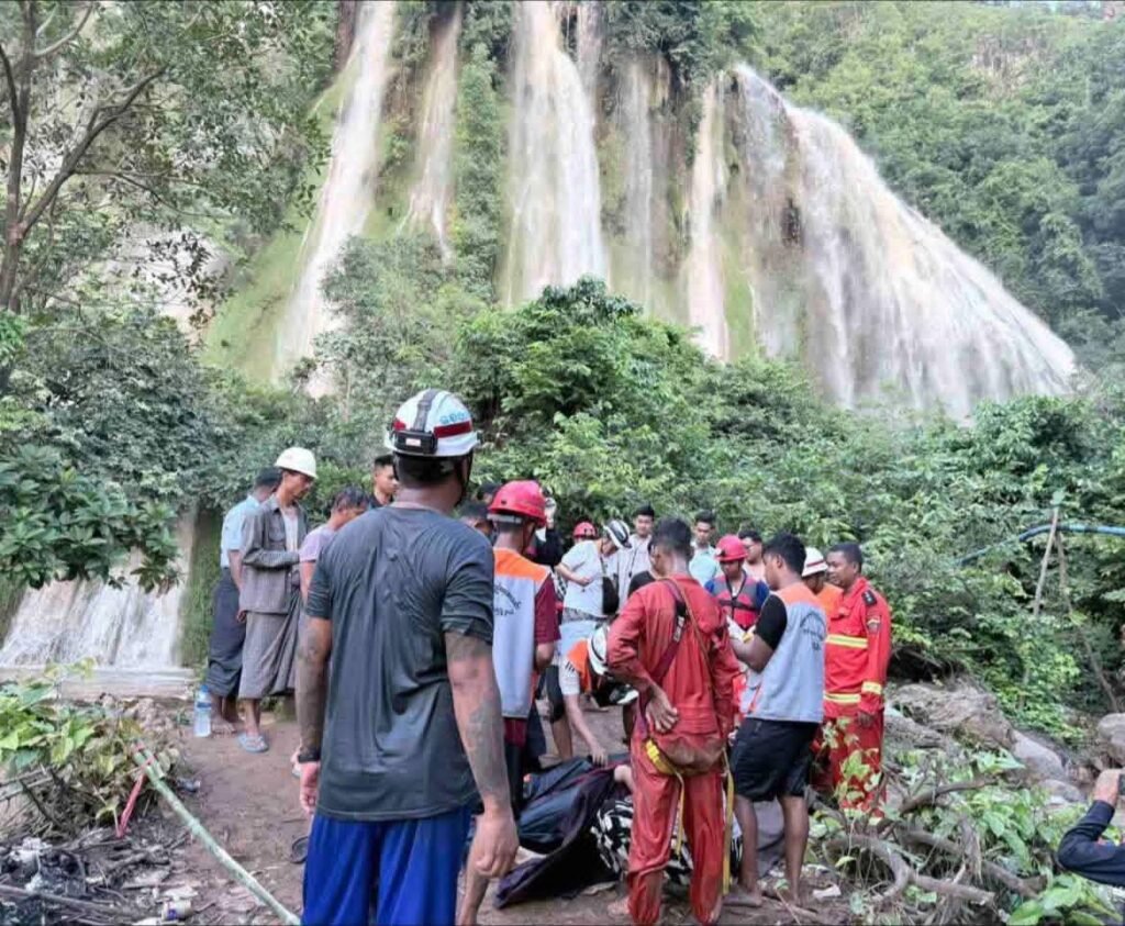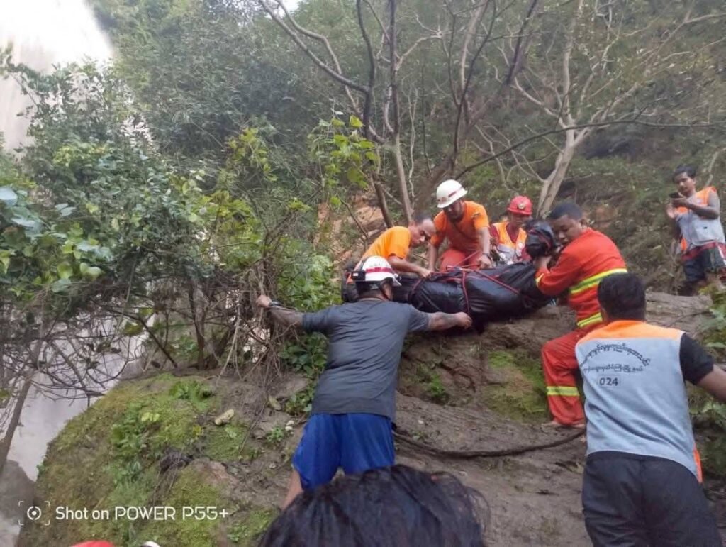 ရေတံခွန်ရှစ်ထပ်ကနေ ပြုတ်ကျတာကြောင့် အသက် ၂၀ ကျော်အရွယ် မြန်မာအမျိုးသမီး ၂ ဦး ဟာကျောက်တုံးတွေအကြား ဦးခေါင်းကွဲ၊ အရိုးကျိုးဒဏ်ရာတွေနဲ့ သေဆုံးခဲ့ပြီး နောက်ထပ် အမေရိကန်နိုင်ငံသူ ၁ ဦးနဲ့ မြန်မာအမျိုးသမီး ၁ ဦးတို့ ပျောက်ဆုံးနေဆဲ ဖြစ်တယ်လို့ ဆိုပါတယ်။