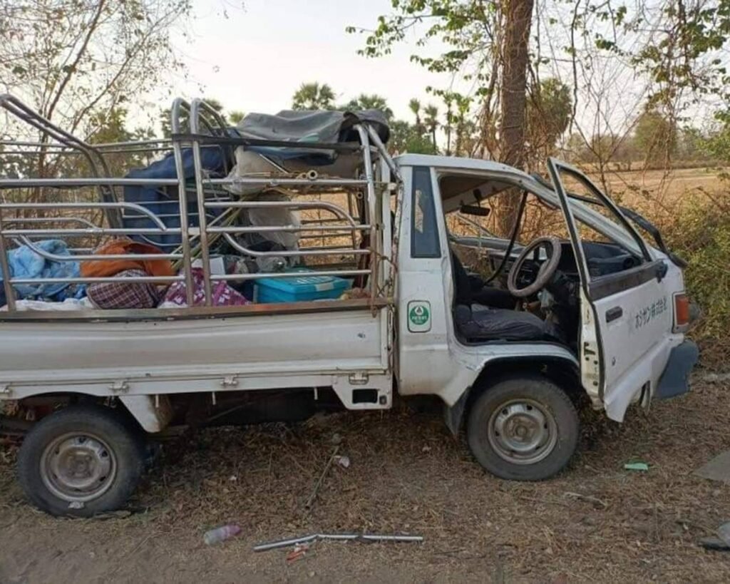 “သူတို့သွားမယ့်ကျောင်းက ညောင်ကန်နားက ရွာပဲ။ ဘီးပေါက်ပြီး “ရေကျော်ရှေ့” ဆိုတဲ့ ဆိုင်းဘုတ်ကိုဝင်တိုက်ပြီး ကားက လည်ထွက်သွားတာ။ အဲဒီမှာ သံဃာ ၁ ပါးက ဘာနဲ့ထိုးမိတာလဲမသိဘူး၊ ပျံလွန်တော်မူသွားတယ်” လို့ ပြောပါတယ်။
