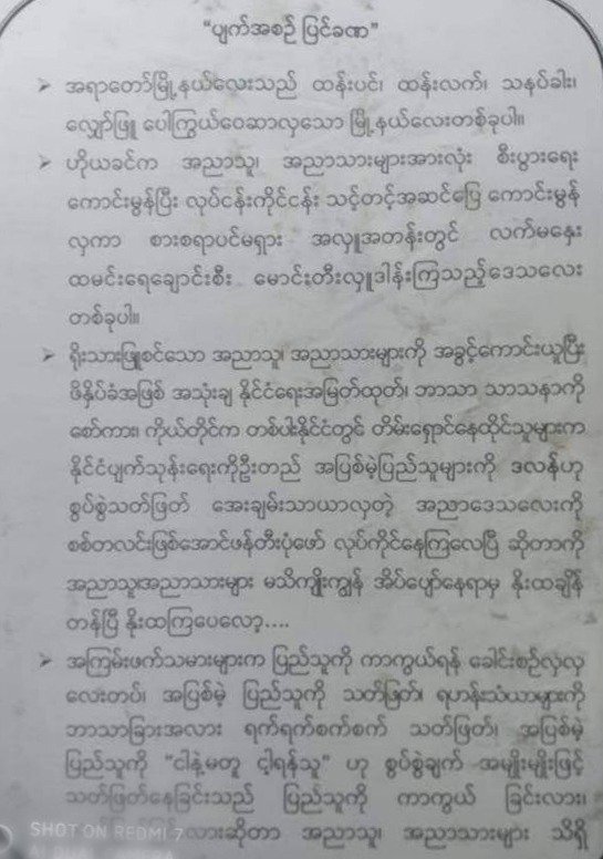 အရာတော်သားတွေကို နိမ့်ချရေးထားတဲ့ဝါဒဖြန့်စာတွေ စစ်အုပ်စုက လိုက်ကြဲ