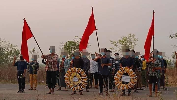 ဧပြီလ ၁၄ ရက် ဒီနေ့ မနက် ၇ နာရီလောက်မှာ ကနီ နွေဦးသပိတ်တော်လှန်ရေးသပိတ်အင်အားစုနဲ့ ဒေသခံပြည်သူတွေ စုပေါင်းပြီး လူဦးရေ ၁၀၀ ကျော်နဲ့ ကနီနယ် မုံရွာ-ယားကြီး-ကလေးဝ ကားလမ်းမတနေရာမှာ အောက်မေ့ဖွယ်အခမ်းအနားကို ကျင်းပခဲ့တယ်လို့ သပိတ်မှာပါဝင်သူ တဦးက ပြောပါတယ်။
