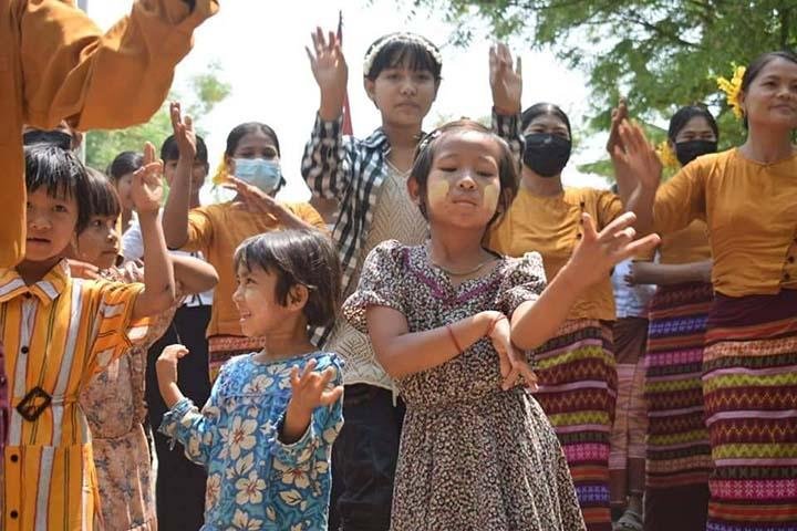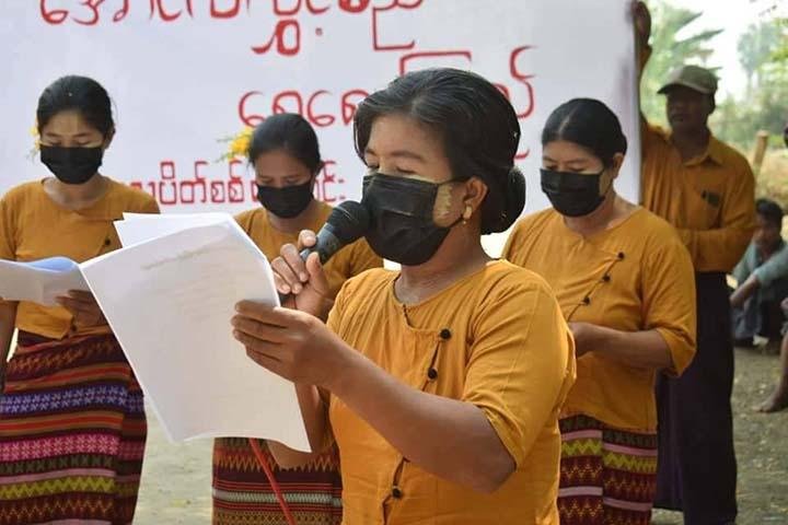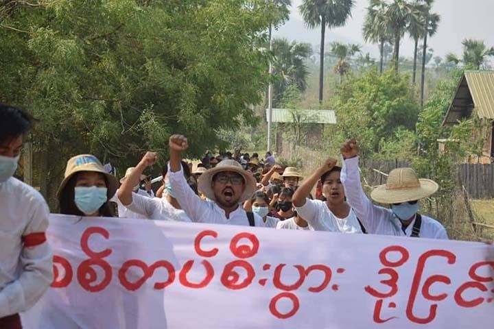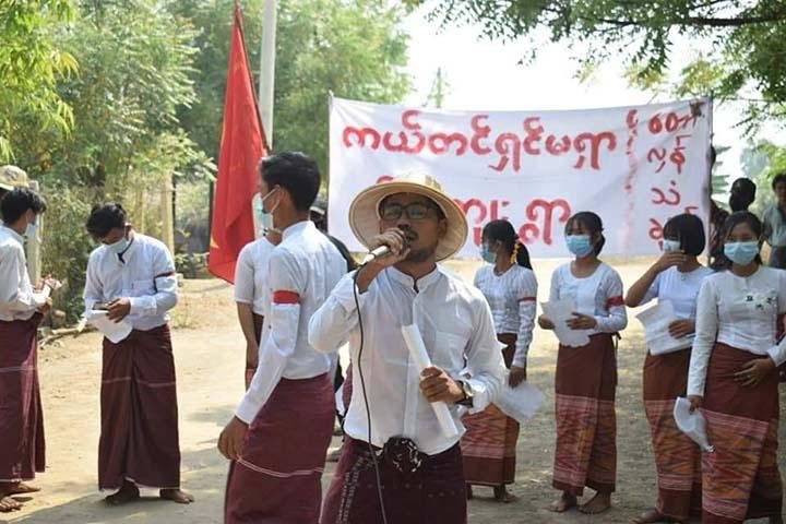 စစ်ကိုင်းတိုင်း၊ ယင်းမာပင်မြို့နယ်မှာ ဧပြီလ ၁၄ ရက် ဒီကနေ့သင်္ကြန်အကျနေ့မနက် ၉ နာရီလောက်မှာ တော်လှန်ရေးအင်အားစုအဖွဲ့ဝင်တွေက စစ်အာဏာရှင် ဆန့်ကျင်ရေးသပိတ်ပြုလုပ်ရင်း တော်လှန်သံချပ်တွေနဲ့ ဖျော်ဖြေခဲ့တယ်လို့ သိရပါတယ်။
