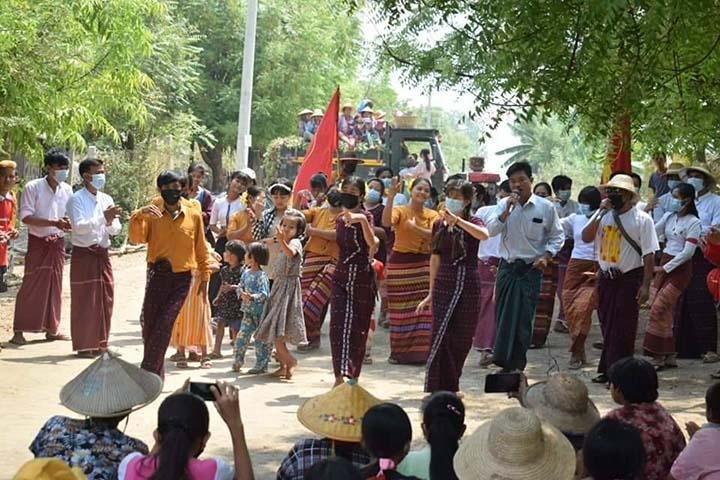 ဆန္ဒပြအဖွဲ့နဲ့အတူ ရွာပေါင်းစုံသံချပ်အဖွဲ့၊ ရွှေရေကြည်သံချပ်အဖွဲ့နဲ့ ကယ်တင်ရှင်မရှာ တို့ကျေးရွာ သံချပ်အဖွဲ့တို့က တော်လှန်သံချပ်တွေနဲ့ ဖျော်ဖြေပြီး၊ ယင်းမာပင်မြောက်ခြမ်းသပိတ်အင်အားစုက တော်လှန်သီချင်းနဲ့ ဖျော်ဖြေခဲ့တယ်လို့ သိရပါတယ်။