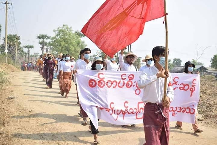 “စစ်တပ်စီးပွား ဒို့ငြင်းဆန် တော်လှန်သင်္ကြန် ပြည်သူ့အသံ” စာတန်းနဲ့အတူ ယင်းမာပင် – ဆားလင်းကြီးရွာပေါင်းစုံသပိတ်စစ်ကြောင်းရဲ့ ၇၆၄ ရက်မြောက်နေ့အဖြစ် ပြုလုပ်ခဲ့ရာ မြို့နယ်တွင်းက သပိတ်အင်အားစုတွေက လာရောက်ပူးပေါင်းခဲ့တယ်”လို့ သပိတ်ကော်မတီဝင်တဦးက ပြောပါတယ်။