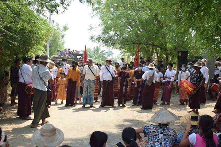 စစ်ကိုင်းတိုင်း၊ ယင်းမာပင်မြို့နယ်မှာ ဧပြီလ ၁၄ ရက် ဒီကနေ့သင်္ကြန်အကျနေ့မနက် ၉ နာရီလောက်မှာ တော်လှန်ရေးအင်အားစုအဖွဲ့ဝင်တွေက စစ်အာဏာရှင် ဆန့်ကျင်ရေးသပိတ်ပြုလုပ်ရင်း တော်လှန်သံချပ်တွေနဲ့ ဖျော်ဖြေခဲ့တယ်လို့ သိရပါတယ်။