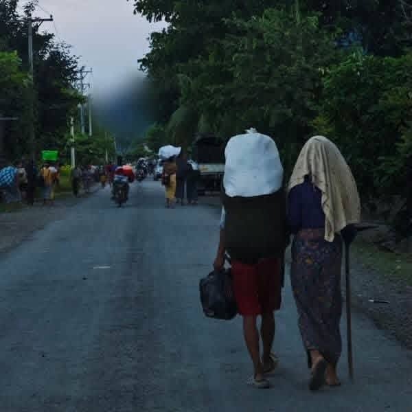 ပုံစာ – တော်လှန်ရေးတပ်တွေလက်လွှတ်လိုက်ရတဲ့စခန်းတချို့နဲ့ နေရပ်စွန့်ခွာထွက်ပြေးနေရတဲ့ လက်ပံချောင်းရွာဒေသခံများ။