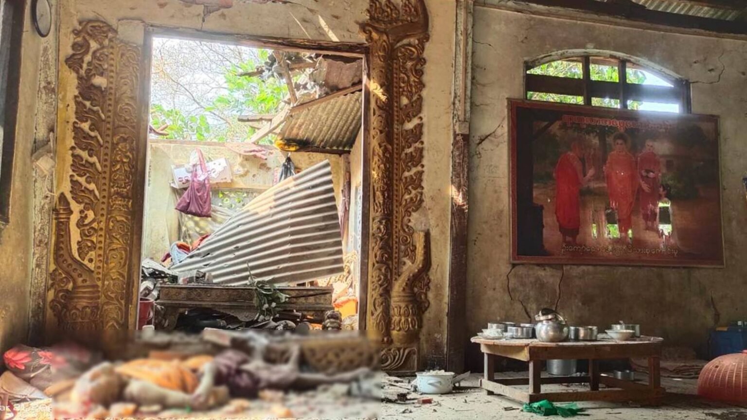 လက်နက်ကြီးထိမှန်လို့ သက်တော် ၅၀ ကျော် ကျောင်းနေသံဃာ ၁ ပါး နေရာတင် ပျံလွန်တော်မူပြီး နောက်ထပ်သံဃာ ၂ ပါးမှာ ခြေထောက်နဲ့လက်တွေ အစမှန်ဒဏ်ရာရရှိသွားခဲ့ကာ ဘုန်းကြီးကျောင်း ဆွမ်းစားဆောင်လည်း ပျက်စီးသွားတယ်လို့ ဆိုပါတယ်။