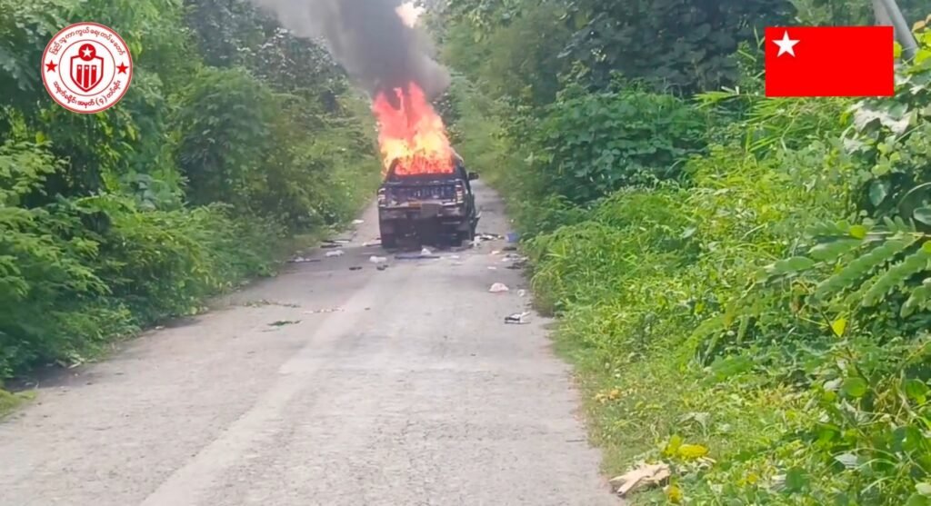 မကွေးတိုင်း၊ သရက်ခရိုင်၊ မင်းတုန်းမြို့နယ် ပုသိမ်-မုံရွာလမ်းပိုင်းမှာ စစ်ကော်မရှင်တပ်လက်အောက် တိုင်းအဆင့်ရဲမှူးလိုက်ပါလာတဲ့ ယာဥ်တန်းကို ဒေသကာကွယ်ရေးတပ်ဖွဲ့တွေက စောင့်ကြိုတိုက်ခိုက်ခဲ့ရာ ကား ၁ စီးကို မီးရှို့ဖျက်ဆီးနိုင်ပြီး ခဲယမ်းတွေသိမ်းဆည်းရရှိခဲ့တယ်လို့ သရက်ခရိုင်တပ်ရင်း ၄ က ထုတ်ပြန်ပါတယ်။