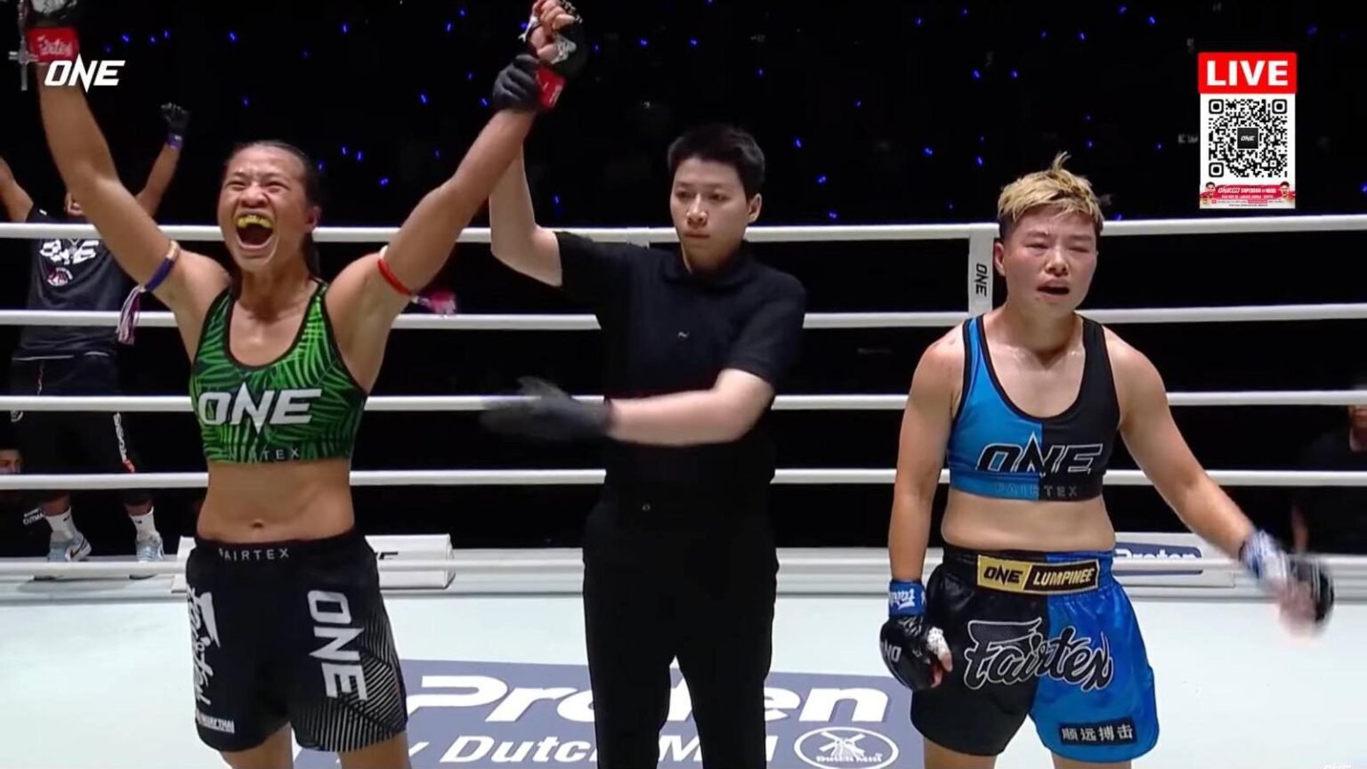 ယနေ့ညယှဉ်ပြိုင်နေတဲ့ One Friday Fight 132 ပွဲစဉ်ရဲ့ ဒုခေါင်ပွဲအဖြစ်ပွဲထွက်လာတဲ့ အက်တမ်ဝိတ်တန်း မွေထိုင်းပွဲမှာ တရုတ်ဖိုက်တာ လီမင်ဂူရီကို ကယန်းကျားသစ်မယ် ဘရော်နီကာ က အမှတ်နဲ့ အနိုင်ယူခဲ့ပါတယ်။