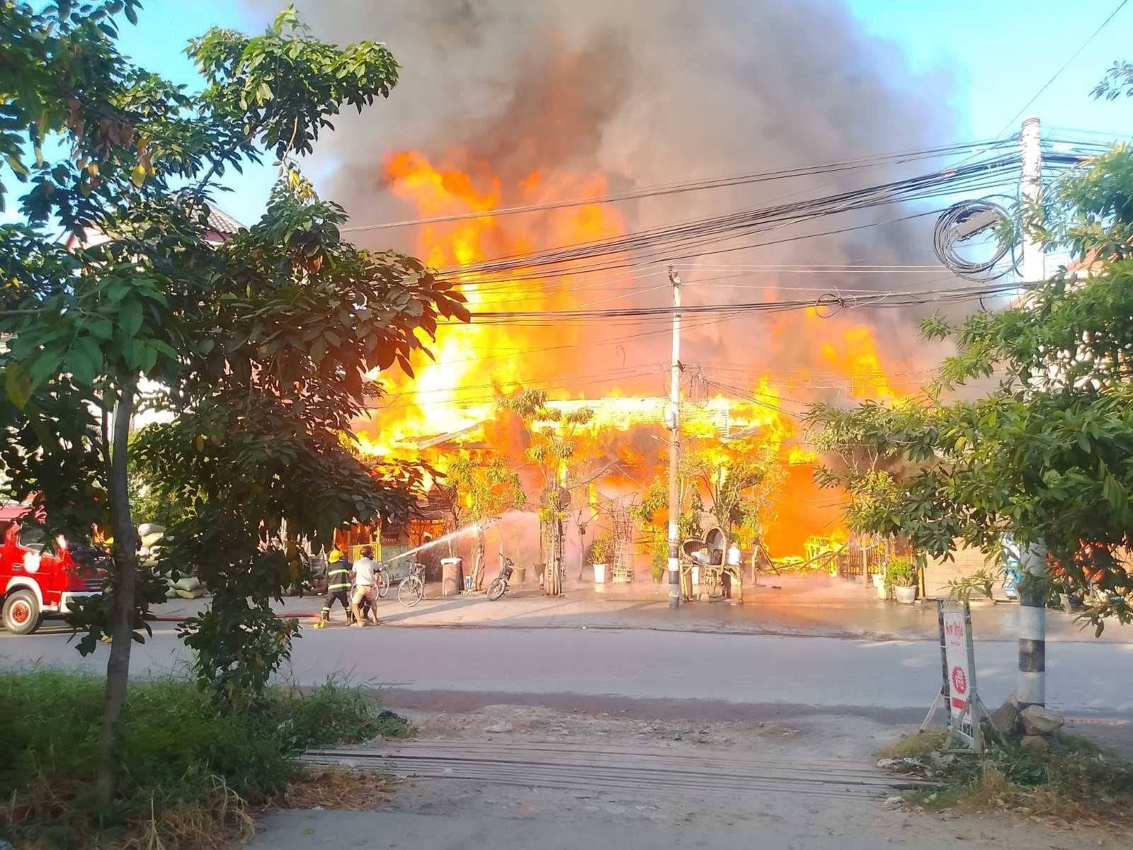 ဂက်စ်ယိုစိမ့်ရာကမီးလောင်မှုဖြစ်ပြီး လက်ဖက်ရည်ဆိုင်နဲ့နေအိမ် ၂ လုံးပျက်စီး