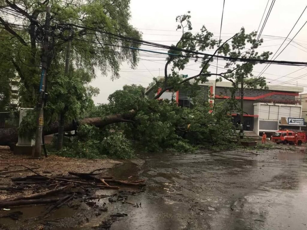 မိုးသည်းထန်စွာရွာလို့ ဖုန်းဆိုးရပ်ကွက်၊ ကျောက္ကာလမ်း၊ ရုံးကြီးရပ်ကွက် သစ်တောလမ်း၊ ရုံးကြီးရပ်ကွက်၊ ဘူတာလမ်း စတဲ့နေရာတွေက တမာနဲ့ ကုက္ကိုင်ပင်ကြီးတွေ လဲကျခဲ့တာလို့ ဆိုပါတယ်။