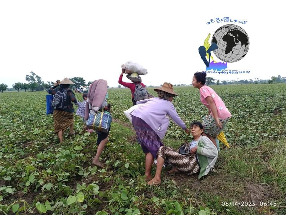စစ်ကိုင်းတိုင်း၊ ခင်ဦးမြို့နယ်အနောက်ခြမ်းကို စစ်ကောင်စီနဲ့ ပျူတပ်သားတွေက မေလ ၁၄ ရက် ဒီမနက် ၆ နာရီကျော်မှာ လက်နက်ကြီးတွေ ပစ်ခတ်ပြီး စစ်ကြောင်းထိုးနေတာကြောင့်ဒေသခံ ၃၀၀၀ ကျော် မိုးပြင်ထဲထွက်ပြေးနေကြရတယ်လို့ ဒေသခံတွေက ပြောပါတယ်။