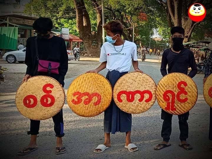 ဆားလင်းကြီးမြို့နယ်၊ ညောင်ပင်ကြီးရဲစခန်းအနီး လမ်းမပေါ်မှာ “စစ်အာဏာရှင်ကျရှုံးရေးဒို့အရေး” စာသားကို ဆန်ကောချပ်တွေမှာရေးကာ လူငယ်တွေက ဆန္ဒပြခဲ့ကြတာဖြစ်တယ်လို့ အညာပစ်တိုင်းထောင်လေးများအဖွဲ့တာဝန်ရှိသူဆီက သိရပါတယ်။