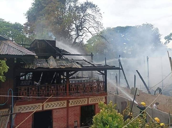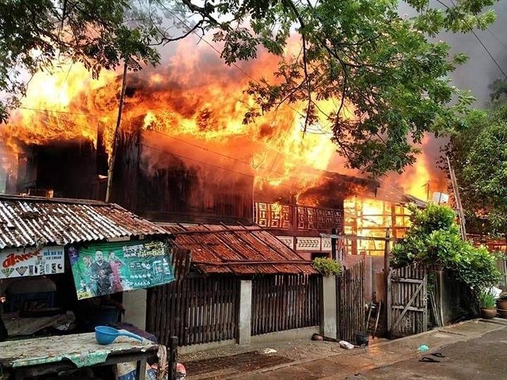 ဇွန်လ ၇ ရက် ဒီမနက် ၁၁ နာရီခန့်မှာ အေးသာယာရပ်ကွက်၊ ချင်းတွင်းကမ်းနားအနီးက ၂ ထပ်နေအိမ်ရဲ့ အပေါ်ထပ်မှာ အင်ဗာတာကနေ ဘတ္ထရီအိုးကို အားသွင်းထားချိန် ပေါက်ကွဲမှုဖြစ်ပြီး နံရံကိုမီးကူးစက်ရာက မီးလောင်ခဲ့တာလို့ ဒေသခံတဦးက ပြောပါတယ်။