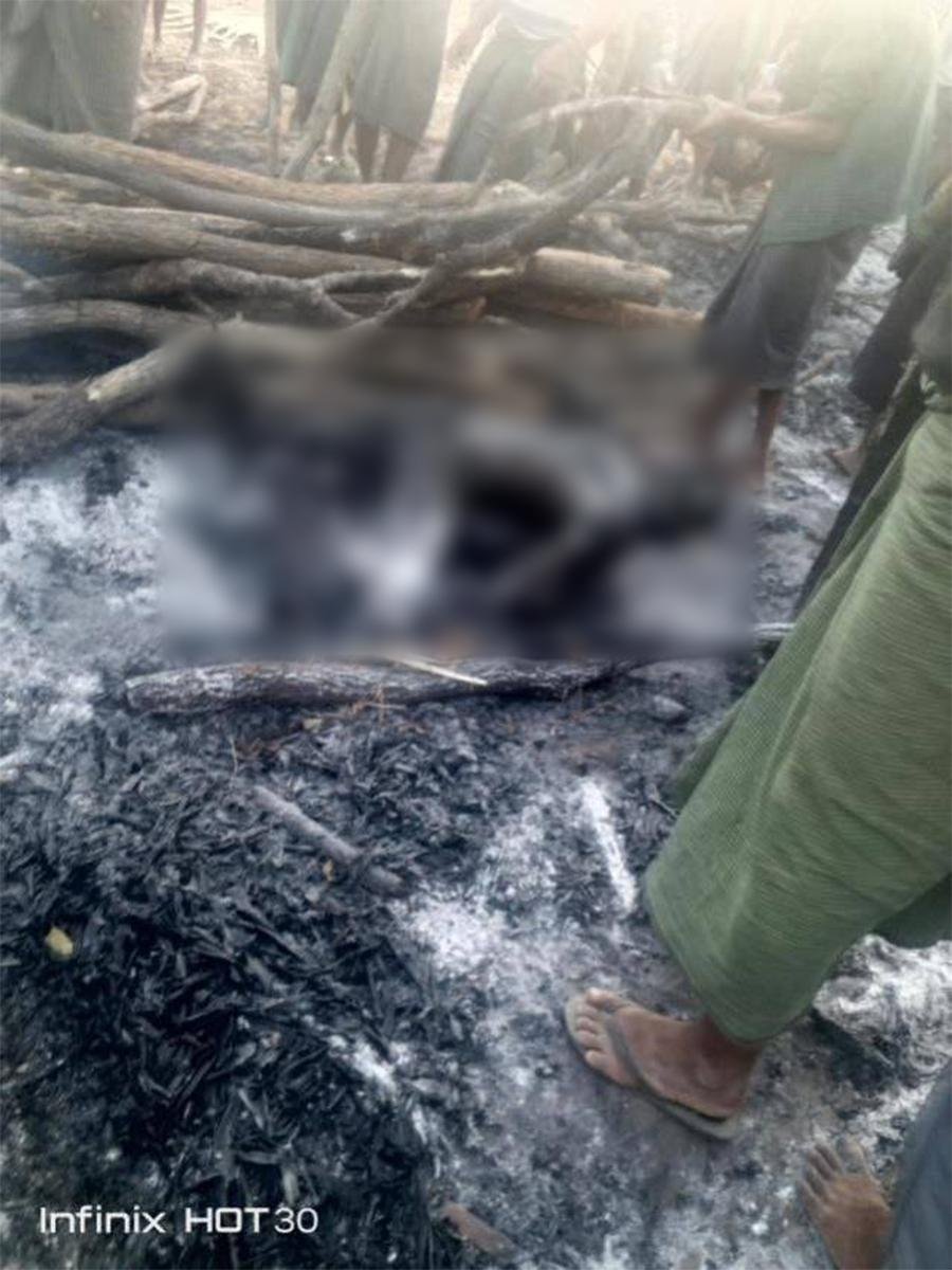 သေဆုံးသူသားအဖ ၂ ယောက်ကိုစစ်တပ်ကဖမ်းဆီးမိချိန်မှာ ရွာပတ်လည်ကို လိုက်ပြခိုင်းပြီးမှ ၎င်းတို့နေထိုင်ရာ ထန်းတောတိုက်ထဲမှာပဲ သတ်ဖြတ်မီးရှို့ခဲ့တာဖြစ်ပြီး မီးရှို့သတ်ခံထားရတာကို စစ်ကြောင်းရွာကနေ ပြန်ထွက်ပြီးချိန် ညနေ ၅ နာရီလောက်မှာ ရွာထဲပြန်ဝင်လာသူတွေက မြင်တွေ့ရတာလို့ဆိုပါတယ်။