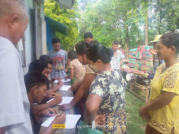 အိမ်ထောင်စု ၁၁၅ စုက လူဦးရေ ၆၀၀ ကျော်ရှိနေပြီး၊ တအိမ်ထောင်ကို ဆန်တပြည်၊ ဆီငါးဆယ်သား တဗူး၊ ဆားတပိဿ၊ အသားတု အစိတ်သား၊ ကြာဇံတထုပ်၊ ဖျာတစ်ချပ်၊ ပဲတပြည်၊ လက်ဆွဲခြင်းတလုံးစီ ထောက်ပံ့ လှူဒါန်းခဲ့တာပါ။