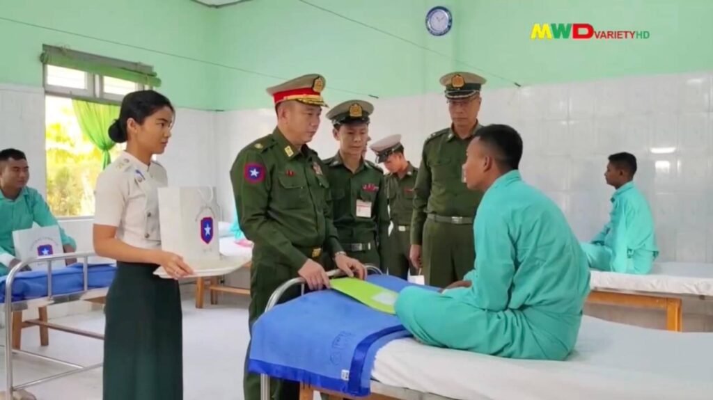 နန်းတွင်းအခြေစိုက် အမှတ် ၁ စစ်မြေပြင်ဆေးတပ်ရင်း (မဆရ ၁) ဆေးရုံမှာ တက်ရောက်နေတဲ့ လူနာတွေကို တိုင်းမှူး တင်မင်းလတ် က ယမန်နေ့ ဇန်နဝါရီ ၃၀ ရက်မှာ သွားရောက်ကြည့်ရှုခဲ့တယ်လို့ ညပိုင်းသတင်းရုပ်သံမှာ ထုတ်ပြန်လာတာပါ။
