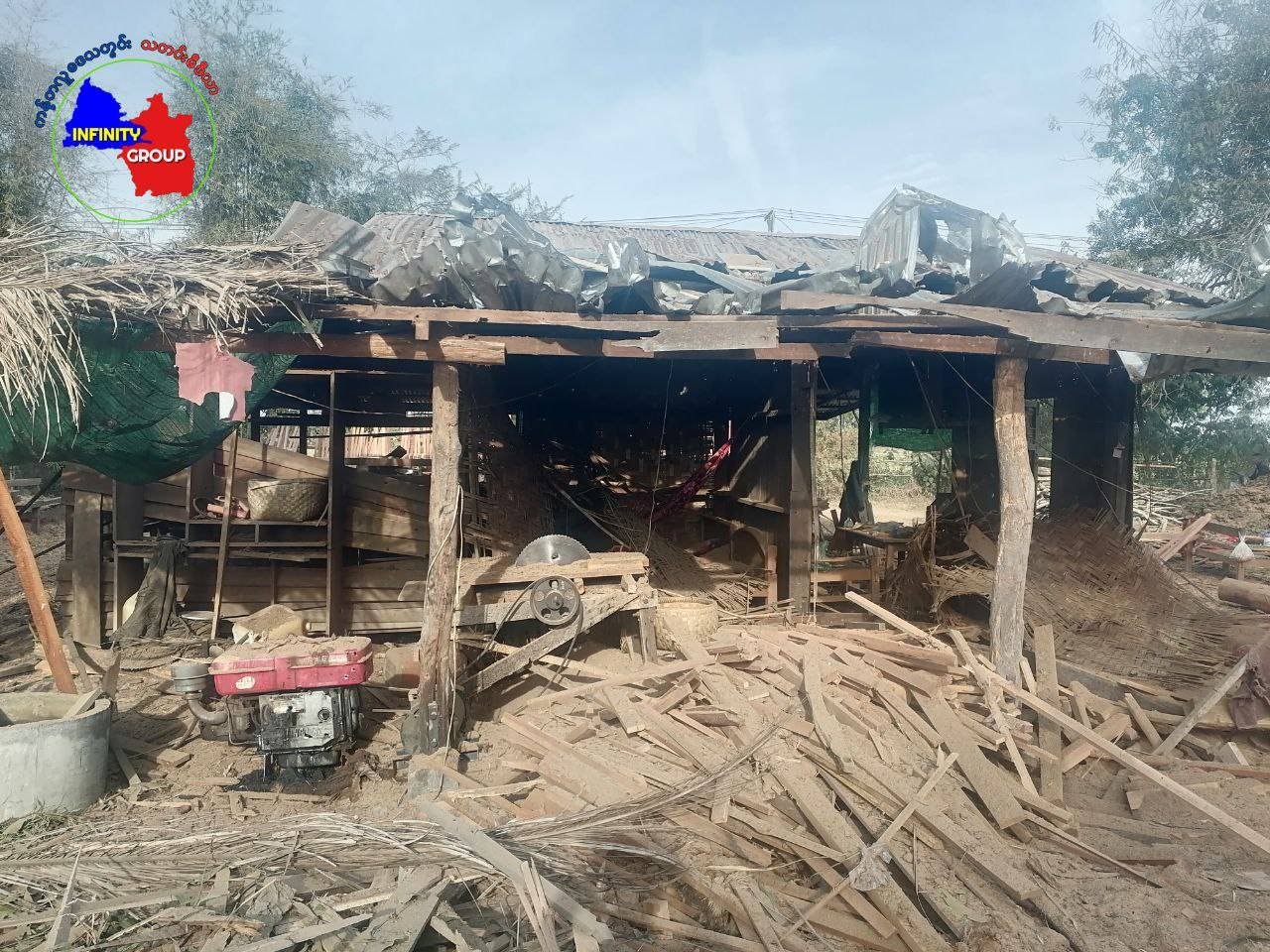 “ရွာထဲက အိမ်ဝန်းထဲကိုကျတာပေါ့။ ဘေးက ကပ်လျက်အိမ်တွေလည်း ပျက်စီးတယ်။ ဗုံးက ၃ အိမ်ကြားကို ကျတာဆိုတော့ ဘယ်ညာညှပ်ထားတဲ့ ၂ အိမ်ကိုသွားထိတာမှာ မင်္ဂလာဆောင်လာဖိတ်တဲ့ အမျိုးသမီး ၂ ဦးထိတာ။”လို့ ကျေးရွာနဲ့နီးစပ်သူတဦးက ပြောပါတယ်။