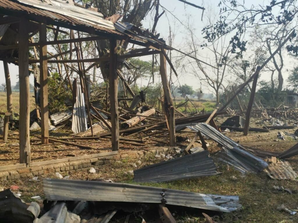 ဖေဖော်ဝါရီ ၁၇ ရက်ည ၁၀ နာရီခန့်မှာ စစ်ကော်မရှင်ရဲ့ ဂျက်ဖိုက်တာ ၁ စီးပေါ်ကနေ ရွာထဲကို ဗုံး ၃ လုံးကြဲချခဲ့တာကြောင့် အသက် ၅၀ အရွယ် အမျိုးသား ၂ ဦးနဲ့ အသက် ၆၀ အရွယ် အမျိုးသမီး ၁ ဦး နေရာမှတင်သေဆုံးခဲ့ပါတယ်။