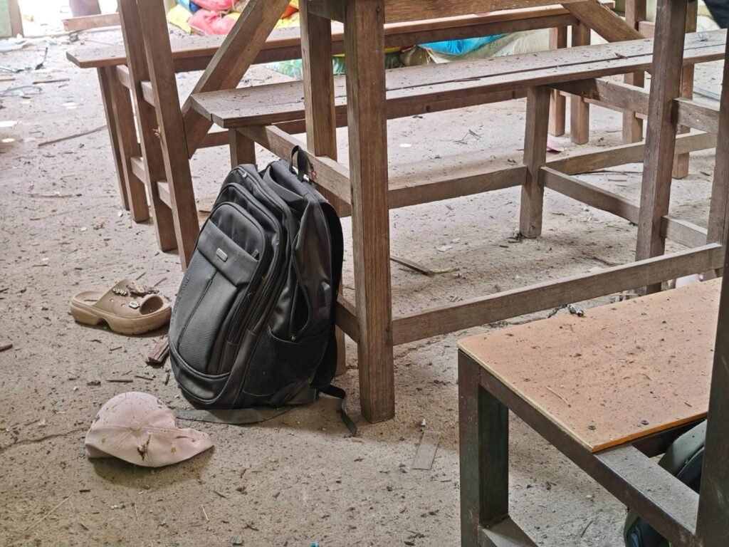 ဒရုန်းဗုံးကျရောက်ပေါက်ကွဲမှုကြောင့် စာသင်ဆောင် ၁ ခု ပျက်စီးခဲ့ပြီး ထိခိုက်ဒဏ်ရာရသူတွေကို ဆေးကုသမှုပေးနေတယ်လို့ ဆိုပါတယ်။