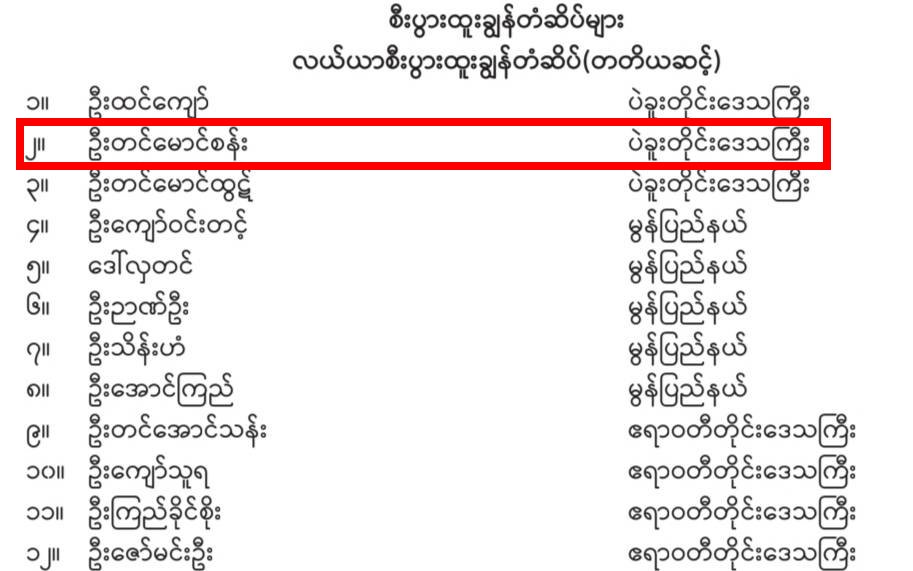 ပြီးခဲ့တဲ့ မတ်လ ၂၅ ရက် နေ့လယ်၂ နာရီခန့်ကလည်း ပြည်ခရိုင်၊ သဲကုန်းမြို့နယ်၊ ပုတီးကုန်းမြို့၊ ညောင်ဝင်းကျေးရွာအုပ်စု ညောင်ဝင်းကျေးရွာ အုပ်ချုပ်ရေးမှူး ဇော်မင်း(ခ)ကုလားဆိုသူကို ပြည်ခရိုင် တပ်ရင်း ၂၊ တပ်ခွဲ ၄ နဲ့ ပြည်ခရိုင်တပ်ရင်း ၁၊ တပ်ခွဲ ၄ တပ်ဖွဲ့၀င်တွေက ပစ်ခတ်ရာသေဆုံးခဲ့ပါသေးတယ်။