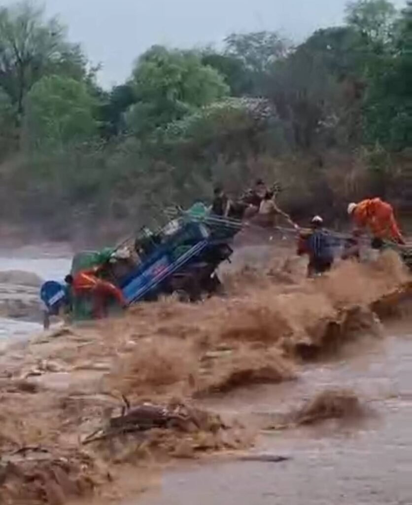 ရေစီးနဲ့မျောသွားတဲ့ကားပေါ်မှာ လူ ၁၉ ဦးပါဝင်ပြီး ချောင်းအတွင်း ၁၀ ပေအကွာမျောပါသွားပြီးနောက်ကားပေါ်မှာ ပိတ်မိနေခဲ့ကာ ကယ်ဆယ်ရေးအဖွဲ့တွေက ၁ နာရီနီးပါးအကြာ ကယ်ဆယ်ရေးလုပ်ငန်းတွေလုပ်ဆောင်ပေးခဲ့ပြီးနောက် အသက်ရှင်လျက်ကယ်ဆယ်နိုင်ခဲ့တာပါ။