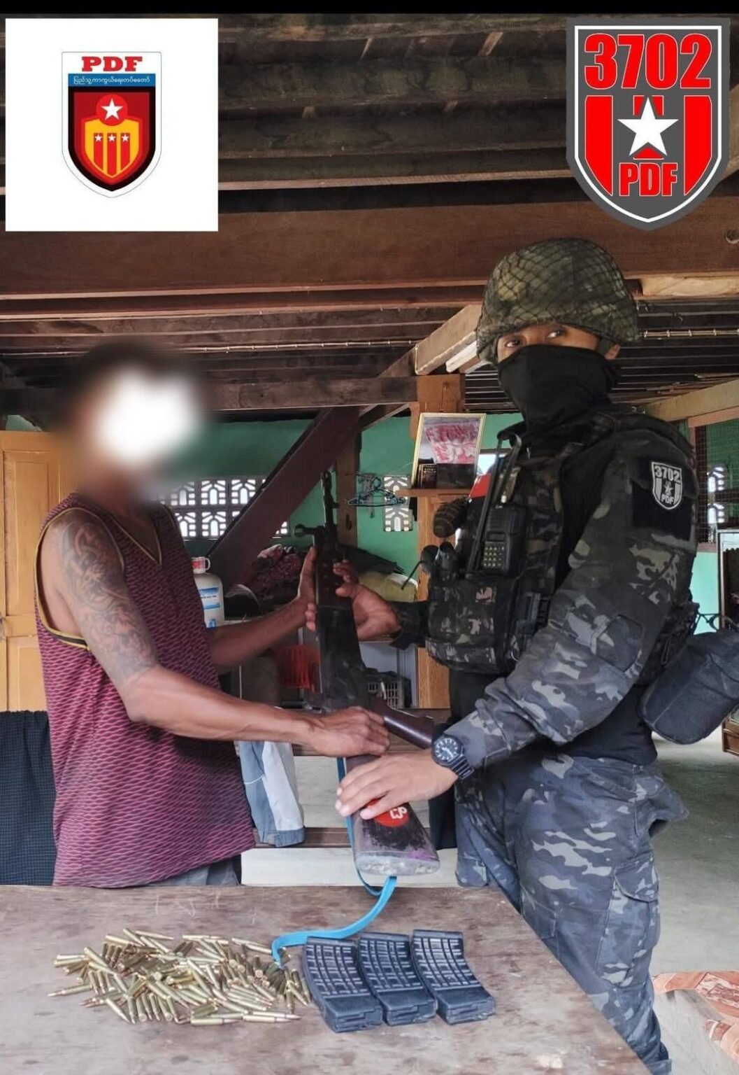 ပဲနွယ်ကုန်း-နတ်သံကွင်းလမ်းပေါ်ရှိ အုန်းနဲပင်ရွာစခန်းမှာတာဝန်ကျနေတဲ့ တိုက်ကြီးမြို့ဇာတိ အသက် ၃၉ နှစ်ရှိ စစ်ကောင်စီတပ်သားဟာ MA 1 ၁ လက်၊ ကျည်ဘောက် ၃ ခု၊ 5.56 ကျည် ၁၀၅ တောင့်နဲ့အတူ ဘက်ပြောင်းခိုလှုံလာတာလို့ ဆိုပါတယ်။