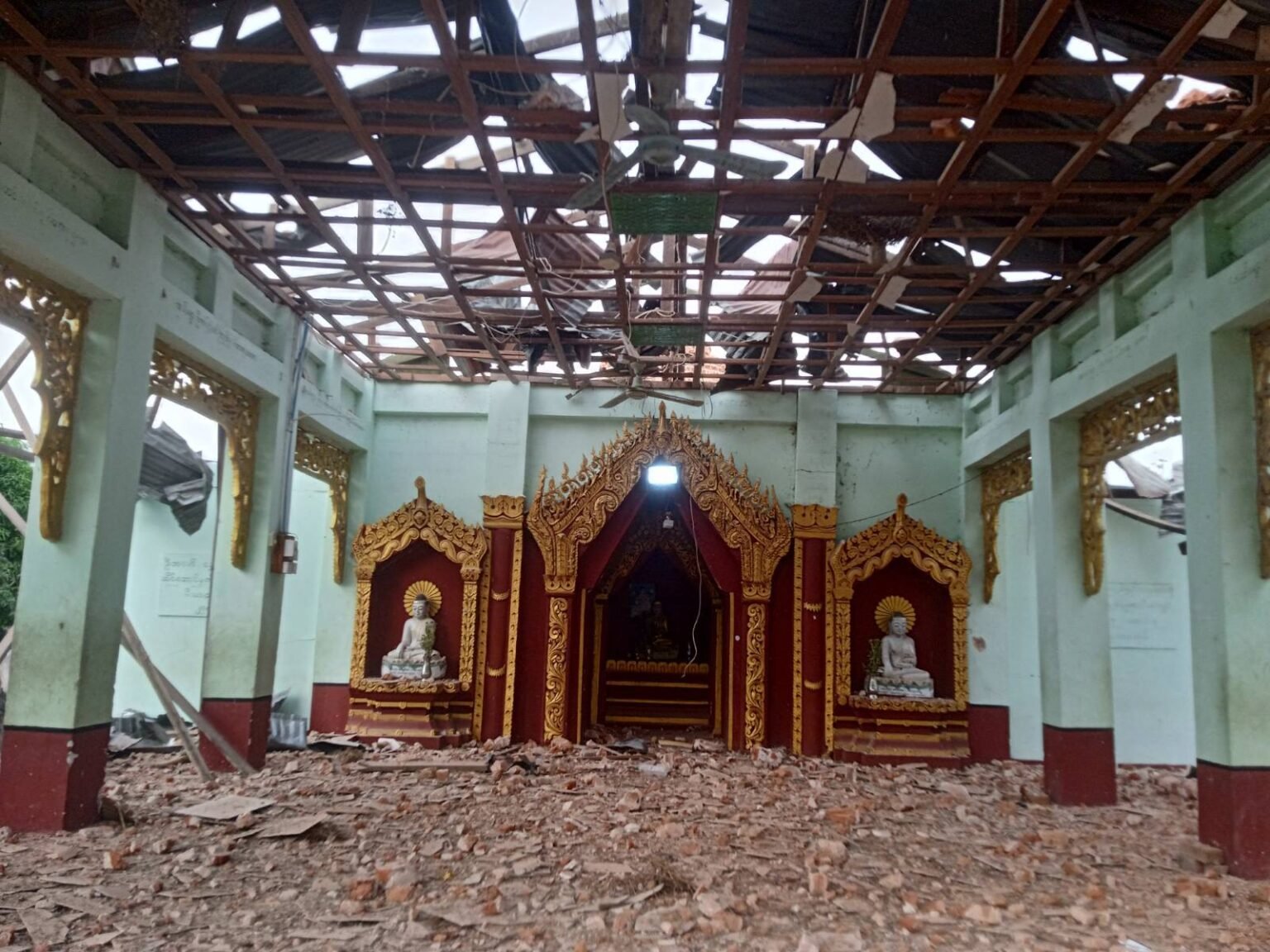 “ပထမဆုံး ဗုံး ၁ လုံးကျတာကတော့ စေတီပေါ်မှာကျတဲ့အခါမှာ စေတီထီးတော်မြေခသွားတယ်၊ ဒုတိယ ၁ လုံးနဲ့ တတိယ ၁ လုံးကတော့ လယ်မကျေးရွာဘုန်းတော်ကြီးကျောင်း နှစ်ထပ်ဆောင်ပေါ်ကို တည့်တည့်ကျသွားတော့ ဘုန်းတော်ကြီးကျောင်းလည်း မီးလောင်ပျက်စီးသွားတယ်၊ စတုတ္ထ ၁ လုံးကတော့ ဘုန်းတော်ကြီးကျောင်းရဲ့ မီတာ ၄၀ အကွာက ပြည်သူ့နေအိမ်ပေါ်ကျတဲ့အခါမှာ အိမ်လည်းပျက်စီးသွားတယ်”လို့ ချင်းတွင်းရိုးမမဟာမိတ်တပ်ပေါင်းစုမှ ရဲဘော် မြတ်ကိုက ပြောပါတယ်။