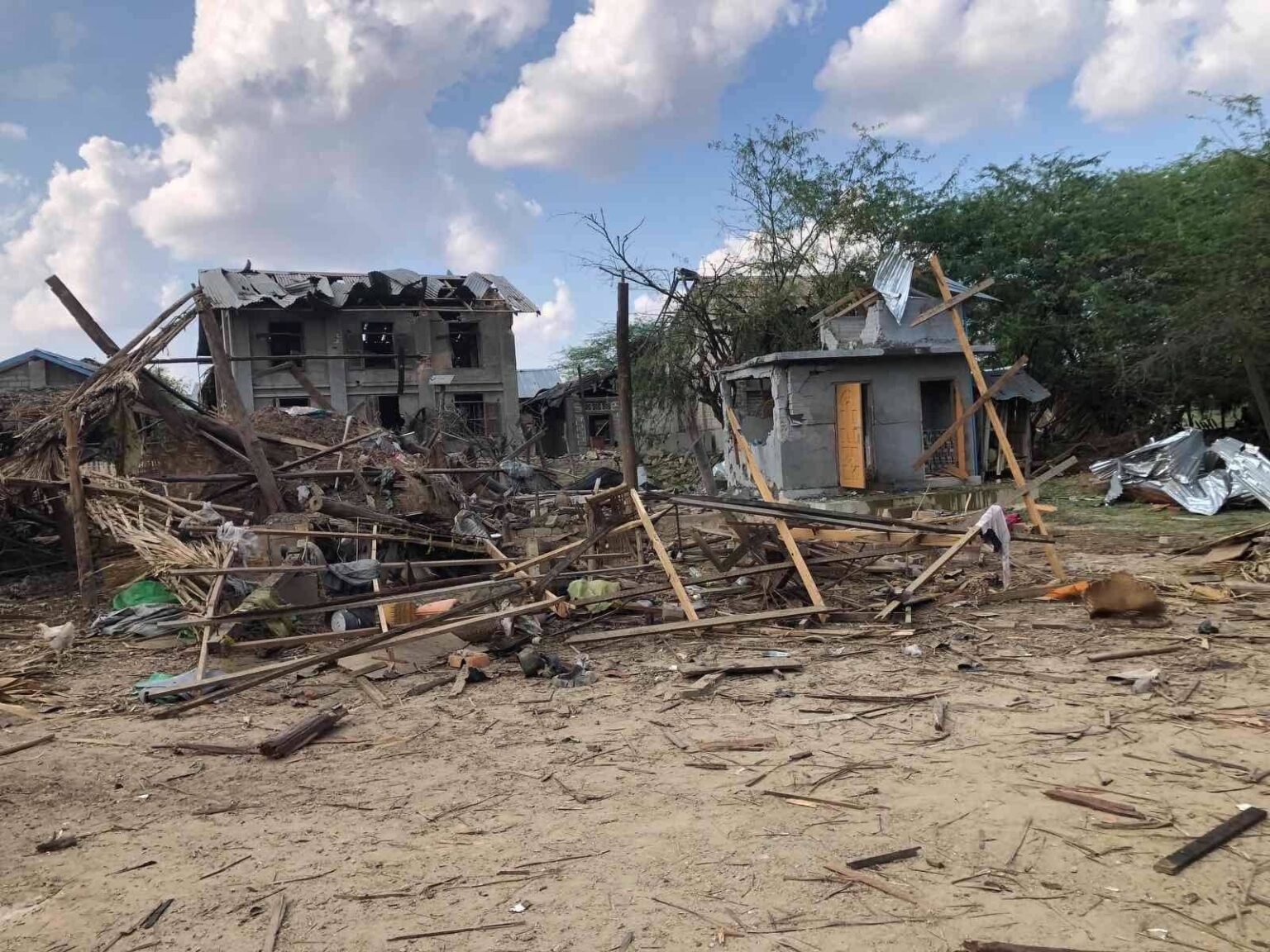 ဒါ့အပြင် ဗုံးကျရောက်ပေါက်ကွဲတဲ့ ရွာတောင်ပိုင်းက နေအိမ် ၅ လုံးပျက်စီးပြီး နွား ၂ ကောင်လည်း သေဆုံးခဲ့တယ်လို့ သိရပါတယ်။