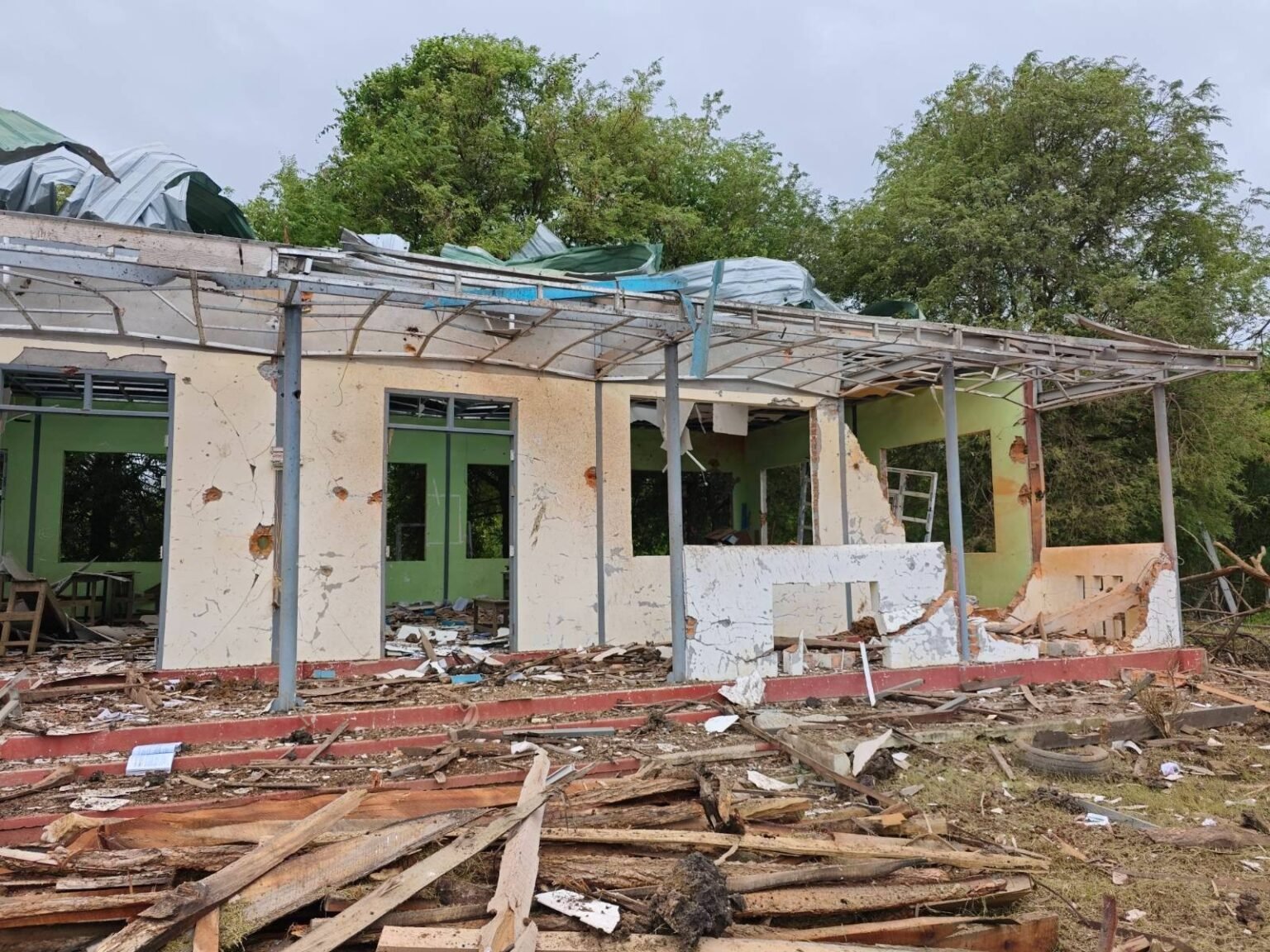 ဗုံးကြဲခံရတဲ့ စာသင်ကျောင်းဆောင်မှာ အခြေခံပညာအထက်တန်းကျောင်းဖြစ်ပြီး ကျောင်းအဆောက်အဦ ၁ ခုလုံးပြိုကျပျက်စီးခဲ့တယ်လို့ ဆိုပါတယ်။