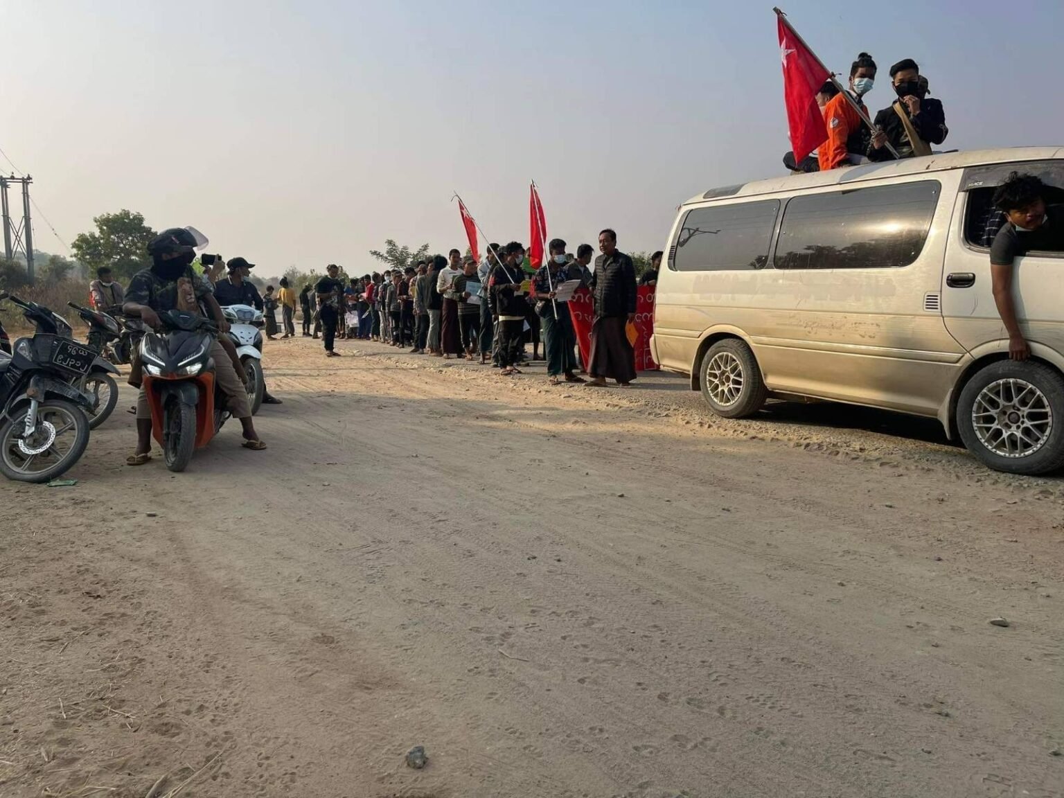 နဂါးနီပြောက်ကျားတပ်ဖွဲ့မှ တာဝန်ခံ ကိုသားငယ်က “ဒါက ကျနော်တို့ဘက်က တော်လှန်ရေး ၂ နှစ်ပြည့် သွေးမအေးကြောင်း ပြည်သူနဲ့တသားတည်းရှိကြောင်း ရဲဘော်တွေလက်နက်မကိုင်ပဲ သပိတ်ဆန္ဒထုတ်ဖော်ကြတာပါဗျ” လို့ ပြောပါတယ်။