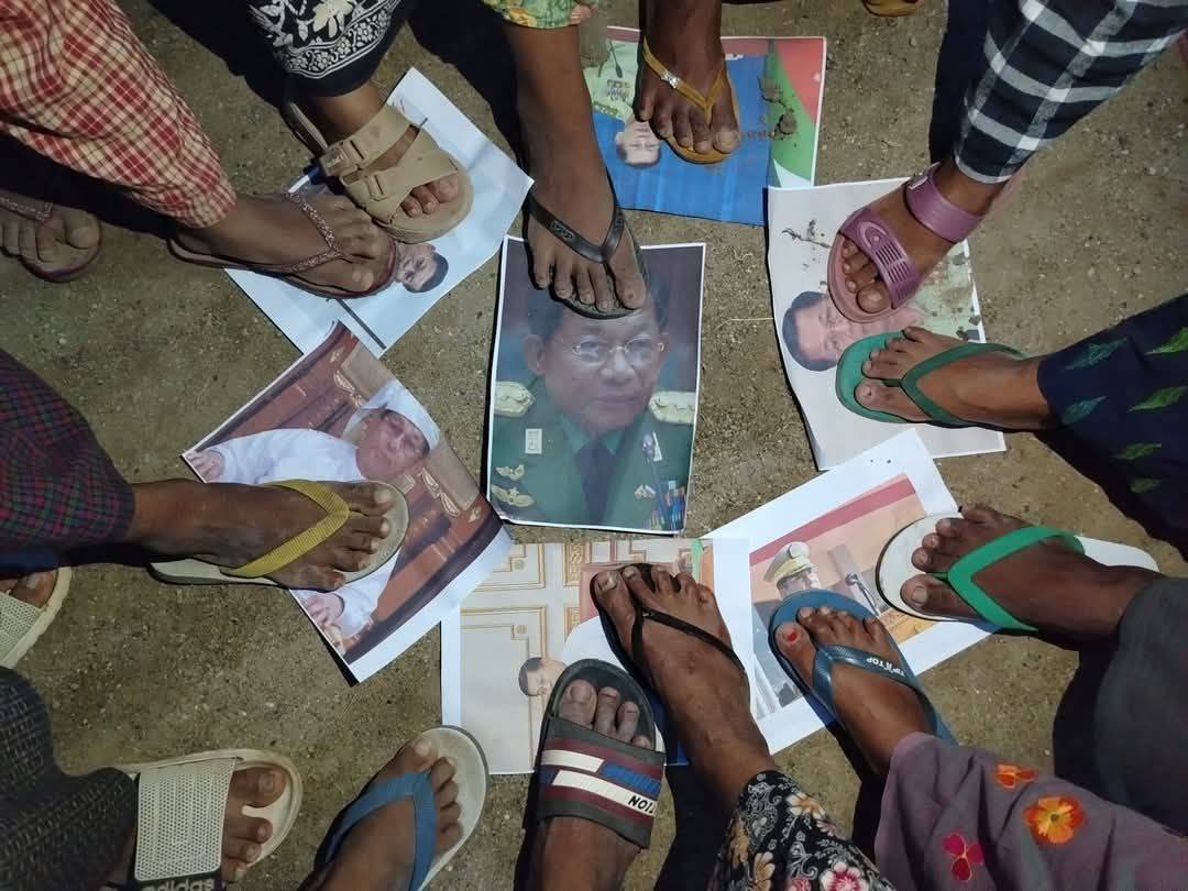 ဇူလိုင် ၃ ရက်မှာကျရောက်တဲ့ စစ်ခေါင်းဆောင်မင်းအောင်လှိုင်ရဲ့ဓာတ်ပုံတွေကို ခြေဖဝါးနဲ့နင်း၊ မီးရှို့မှုတွေလုပ်ပြီး ကျိန်စာတွေတိုက်ခဲ့တယ်လို့ ဆိုပါတယ်။