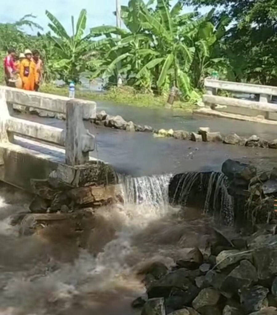 “မနက်က ကားလေး ၁ စီးလည်း သီသီလေးလွတ်သွားတာ။ နောက်က ကူးမယ်ကားတွေလည်း ရှေ့ကို ကူးမလို့ဟန်ပြင်တုန်းကျိုးသွားတာ။ အောက်ကနေ လှိုက်စားပြီး အပေါ်ကလည်းနည်းနည်း ကုန်ကားတွေ ဖြတ်တာလည်းများနေ၊ အောက်ကလည်းအထိန်းမရှိတော့ တံတားအချပ်ကလေးဘဲ ရှိတော့တဲ့ပုံစံမျိုး။ အဲ့ဒါလေးကမှ ကျိုးသွားတာ”လို့ ကူညီလုပ်ကိုင်ပေးနေသူတဦးကပြောပါတယ်။