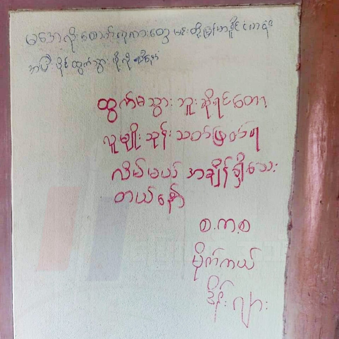 ချမ်းသာရွာကို စစ်ကောင်စီတပ်တွေ ဝင်ရောက်တပ်စွဲပြီး ဒေသခံပြည်သူတွေရဲ့ နေအိမ်အချို့မှာ ” မြန်မာနိုင်ငံက အပြီးပိုင်ထွက်သွားဖို့ လိုပြီ၊ ထွက်မသွားဘူးဆိုရင် လူမျိုးသုန်းသတ်ဖြတ်ရလိမ့်မယ်” ဆိုတဲ့ စာတွေကိုရေးခဲ့တာကို ဓါတ်ပုံမှတ်တမ်းတွေအရ တွေ့ရပါတယ်။