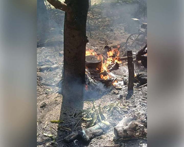 ပြီးခဲ့တဲ့ မေလ ၁၅ ရက်နေ့မှာလည်း ချောင်းဦးမြို့ထဲက Monywa NightKing အဖွဲ့ရဲ့ နောက်တန်းစခန်းကို စစ်ကောင်စီတပ်သားတွေက အခုလိုမျိုးဝင်ရောက်စီးနင်းကာ မီးရှို့ခဲ့တာကြောင့် လက်လုပ်မိုင်းတွေ၊ သေနတ်တွေ၊ ယူနီဖောင်းတွေ ဆုံးရှုံးခဲ့ရတယ်လို့သိရပါတယ်။