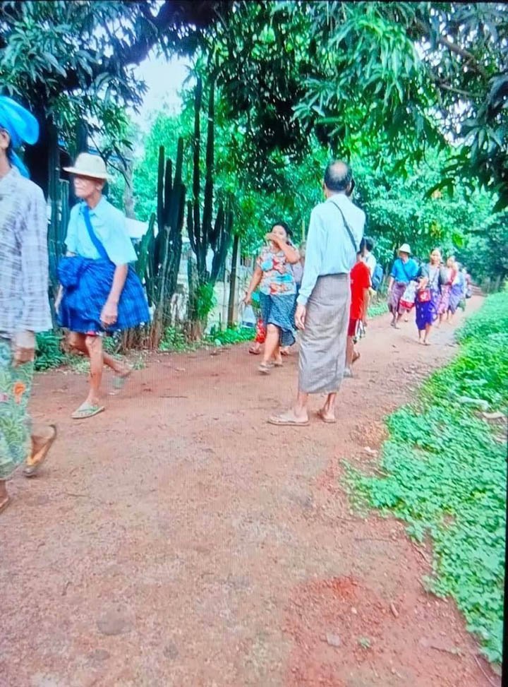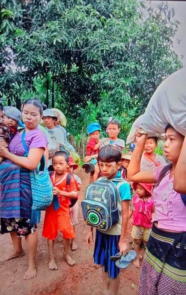 ပုံစာ – ဒီပဲယင်းမြို့နယ်က ကျေးရွာတွေ ၂၀၂၂ အတွင်း စစ်ကြောင်းထိုးခံရလို့ ဒေသခံတွေထွက်ပြေးရစဥ် ( ဓာတ်ပုံ – ဒီပဲယင်းစစ်ရှောင်ထောက်ပံ့ရေး)။