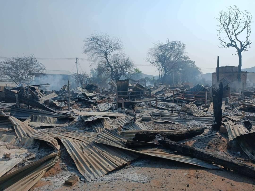 အင်အား ၈၀ နီးပါးပါတဲ့ စစ်ကောင်စီတပ်သားတွေဟာ ဒီမနက် ၆ နာရီလောက်မှာ ရွာထဲကို လက်နက်တွေ ပစ်ဖောက်ဝင်လာပြီးနောက် နေအိမ်တွေကိုမီးရှို့ခဲ့ရာ နေအိမ် ၃၁ လုံး မီးလောင်ပျက်စီးခဲ့ပါတယ်။