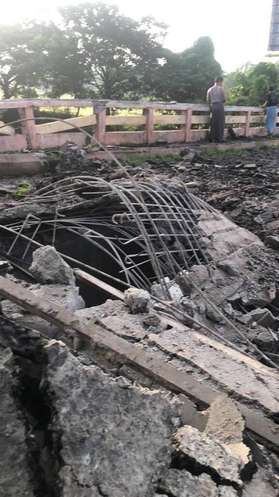 မန္တလေးတိုင်း၊ စဥ့်ကူးမြို့နယ်နဲ့ စစ်ကိုင်းတိုင်း၊ ရွှေဘိုမြို့နယ်ကို ဆက်သွယ်ထားတဲ့ ဧရာဝတီမြစ်ကူးတံတား(ရတနာသိင်္ခ) အောက်တိုဘာ ၂၈ ရက်နေ့ည ၁၁ နာရီခန့်မှာ မိုင်းခွဲခံရပြီး ကျိုးကျသွားခဲ့တယ်လို့ ဒေသခံတွေဆီက သိရပါတယ်။