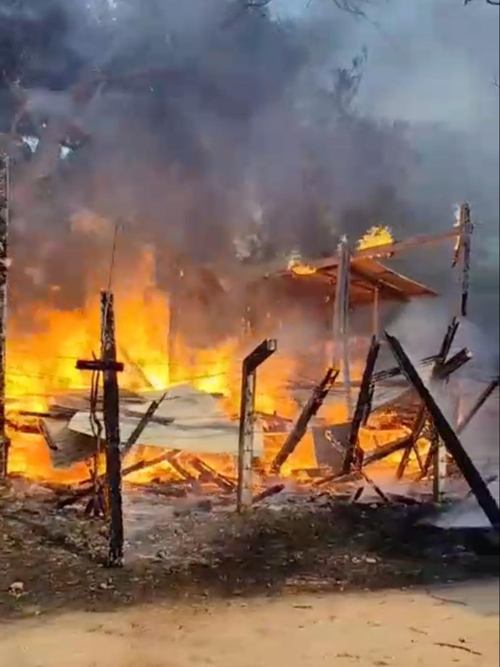အထက်ပါဌာနဆိုင်ရာရုံးတွေမှာ လူနေထိုင်တာမရှိတဲ့အတွက် ထိခိုက်သေဆုံးမှုမရှိဘဲ ခုလိုမီးလောင်တာ ဟာ စစ်ကော်မရှင်တပ်တွေပစ်တဲ့လက်နက်ကြီးတွေ ကျရောက်ပေါက်ကွဲတာကြောင့်လို့ ဆိုပေမယ့် မြေလတ်အသံက သီးခြားအတည်မပြုနိုင်သေးပါဘူး။