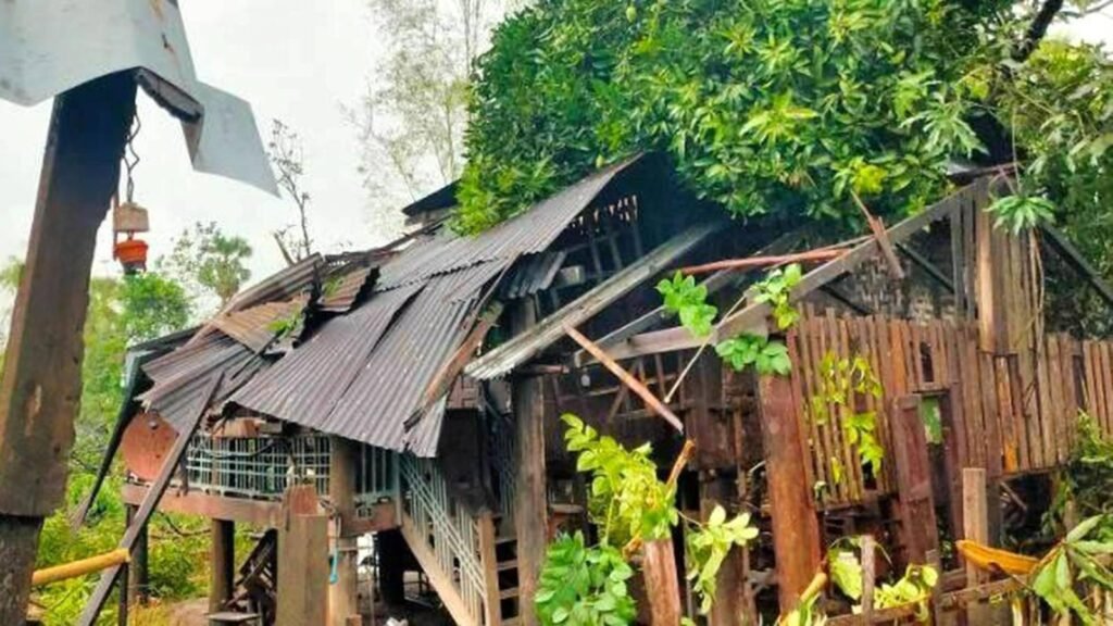 မေလ ၉ ရက်နေ့ညနေ ၅ နာရီခန့်က စတင်ပြီး လေပြင်းတိုက်ခိုက်လာတာကြောင့် သစ်ပင်လဲတာ၊ ဓါတ်တိုင်လဲတာနဲ့ နေအိမ်တွေအမိုးလန်ပျက်စီးတာတွေရှိခဲ့တယ်လို့ ဒေသခံတဦးကပြောပါတယ်။