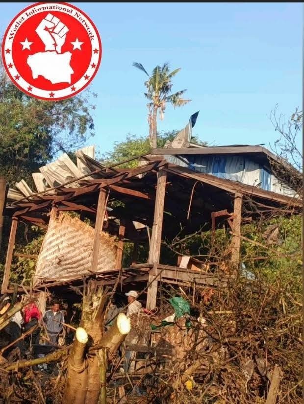 ဗုံးကြဲခံရပြီး လက်နက်ကြီးကျရောက်ပေါက်ကွဲတာကြောင့် ကျေးရွာဆေးပေးခန်းတလုံးအပါအဝင် နေအိမ်အချို့လည်းပျက်စီးမှုရှိပြီး ပျက်စီးမှုစာရင်းကိုတောစိစစ်နေဆဲဖြစ်တယ်လို့ ဆိုပါတယ်။