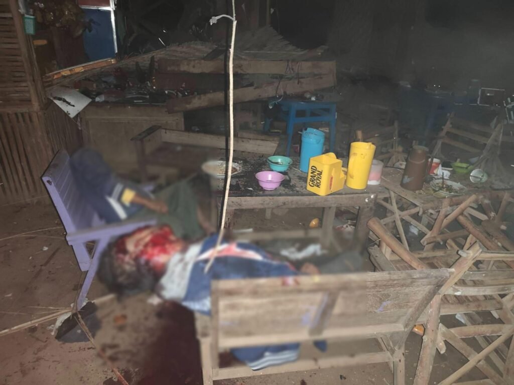 ဒါ့အပြင် ဒီကနေ့မနက်ပိုင်းမှာပဲ ထန်းတပင်အခြေစိုက် ခလရ ၇၃ နဲ့ မုန်းအခြေစိုက် စစ်ကော်မရှင်တပ်ရင်းကနေ လက်နက်ကြီးတွေနဲ့ပစ်ခတ်ခဲ့တာကြောင့် ကျေးရွာအတွင်းဒိုက်ပုံလမ်းဆုံကို ကျရောက်ပေါက်ကွဲခဲ့ကာ ရွာခံတွေဖြစ်တဲ့ အသက် ၃၃ နှစ် ကိုသူရိန်စိုး၊ အသက် ၇၀ ဦးစိုးကြီးတို့သေဆုံးပြီး အသက် ၄၂ နှစ် မခိုင်ဇင်ဦး၊ အသက် ၆၅ နှစ် ဒေါ်ခလေးမ၊ အသက် ၂၀ ကျော် မောင်ဟိန်းသူအောင် အပါ ၇ ဦးဒဏ်ရာရခဲ့တယ်လို့ သိရပါတယ်။