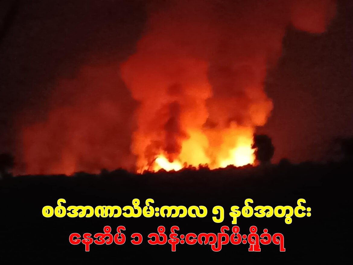 စစ်အာဏာသိမ်းကာလ ၅ နှစ်ကျော်အတွင်း စစ်ကော်မရှင်နဲ့ တော်လှန်ရေးအင်အားစုတွေအကြား စစ်ရေးပဋိပက္ခတွေ ပြင်းထန်လာခဲ့ပြီး စစ်ကော်မရှင်တပ်တွေဘက်က စစ်ကြောင်းထိုးမီးရှို့တာတွေရှိသလို တော်လှန်ရေးအဖွဲ့အစည်းတွေကလည်း ပြည်သူ့စစ် (ပျူစောထီး) အားကောင်းတဲ့ကျေးရွာတွေကို တိုက်ခိုက်ပြီး မီးရှို့ဖျက်ဆီးခဲ့တာတွေလည်းရှိခဲ့တယ်လို့ ဆိုပါတယ်။