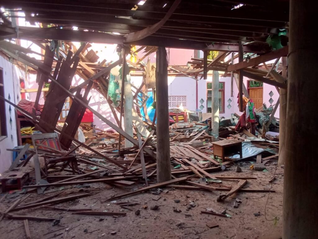 ဒီဇင်ဘာ ၈ ရက် ယမန်နေ့ မနက် ၁၁ နာရီခန့်မှာ ကျောက်ကြီးမြို့ဘက်ကနေလာတဲ့ စက်တပ်လေထီး(ပါရာမော်တာ) ၁ စီးဟာ ကျေးရွာဘုန်းကြီးကျောင်းအတွင်းကို ဗုံး ၂ လုံးကြဲချခဲ့တာလို့ ဆိုပါတယ်။